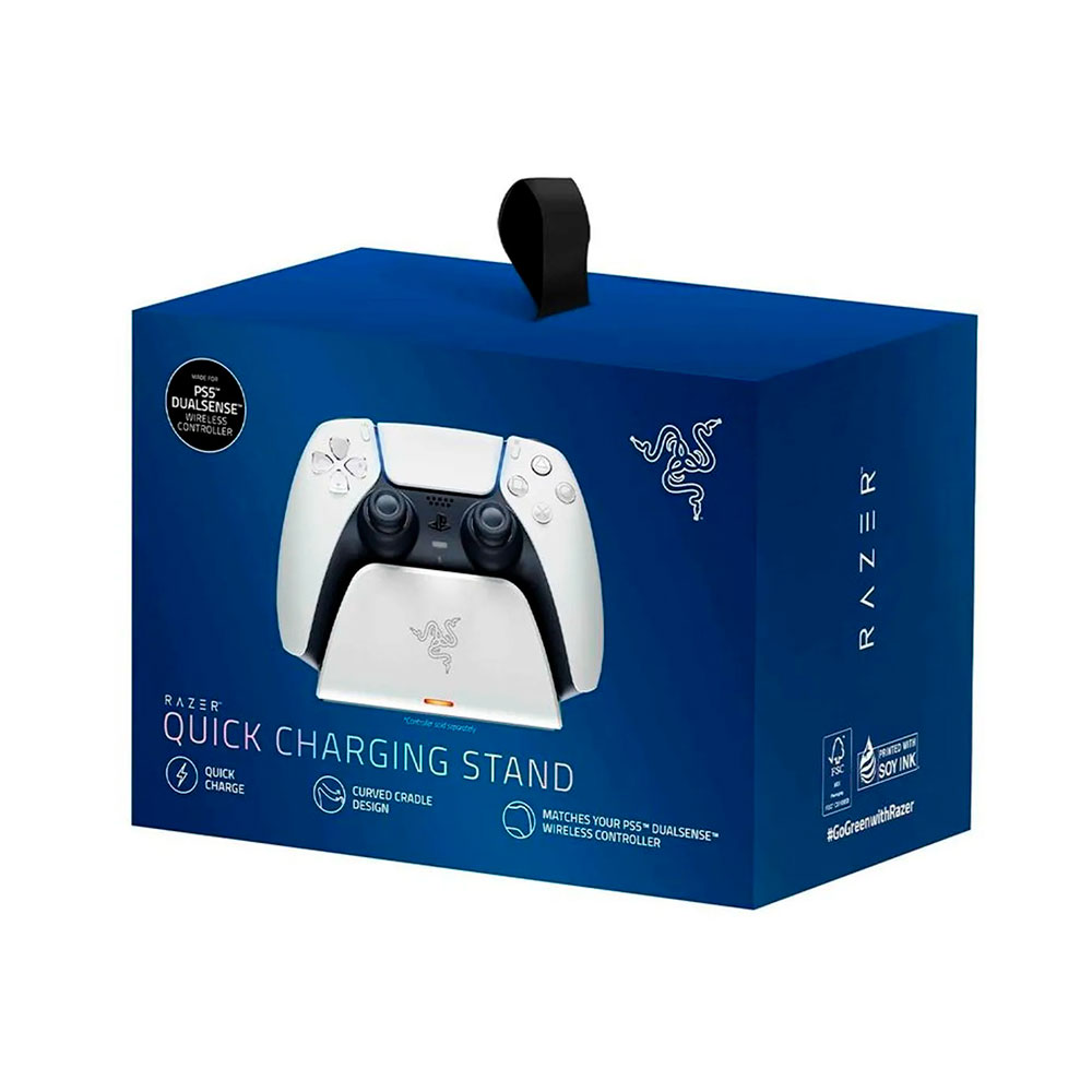 Si buscas la manera más rápida de mantener tu mando inalámbrico DualSense™ de PS5™ al mejor nivel de batería, tu opción perfecta es la base de carga rápida Razer.