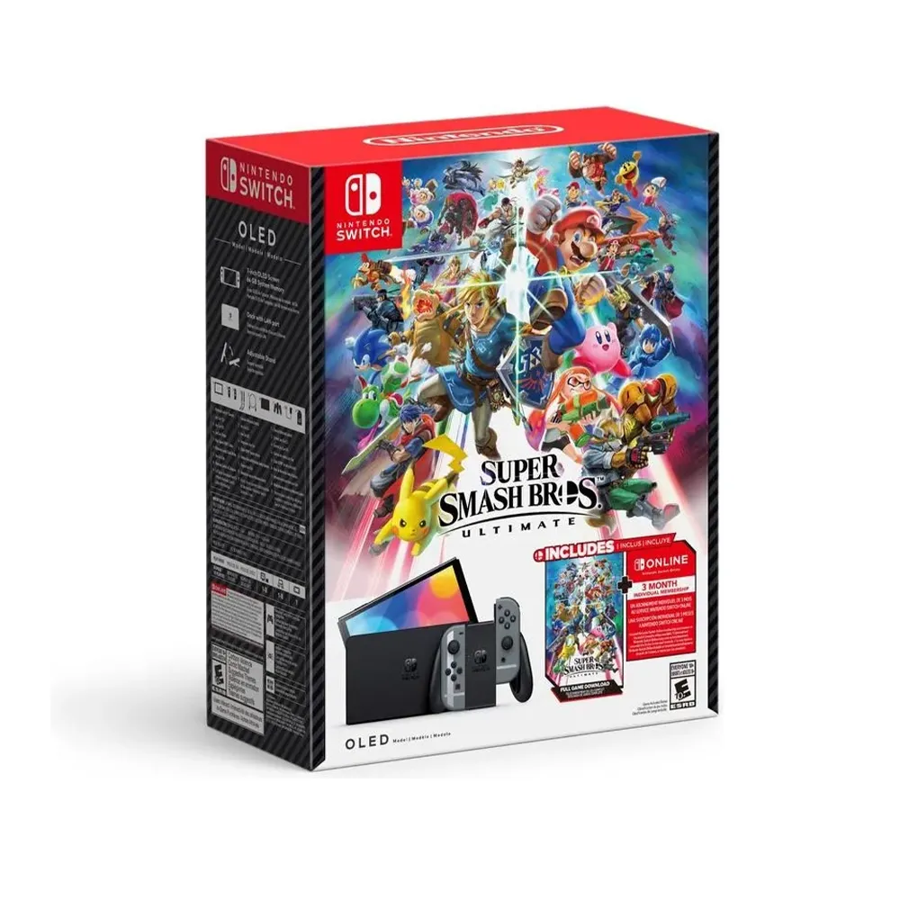 Juega en casa en tu televisor o en el camino con una vibrante pantalla OLED de 7 pulgadas (17.78 cm) con la consola Nintendo Switch – Modelo OLED Super Smash Bros Ultimate. Además de la pantalla, que ofrece colores brillantes y contrastes definidos, la consola incluye 64 GB de almacenamiento interno, una base con un puerto LAN para conexión por cable para jugar en el televisor, un soporte ajustable y amplio y audio mejorado. Incluye el juego Super Smash Bros Ultimate y tres meses de membresia online.
