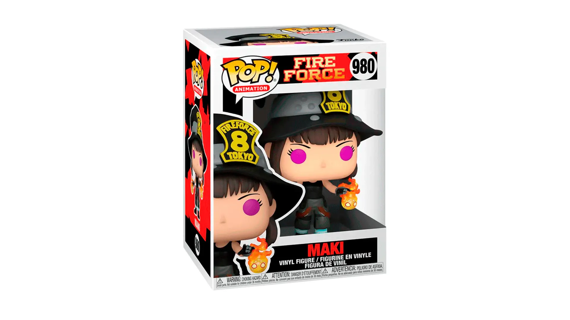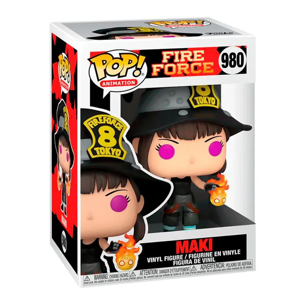 Construye la Fire Force Company 8 para tu colección con Pop! Maki La figura de vinilo mide aproximadamente 5 pulgadas de alto. Se balancea mientras luce su icónico atuendo rosa vibrante con su guitarra rosa chicle.