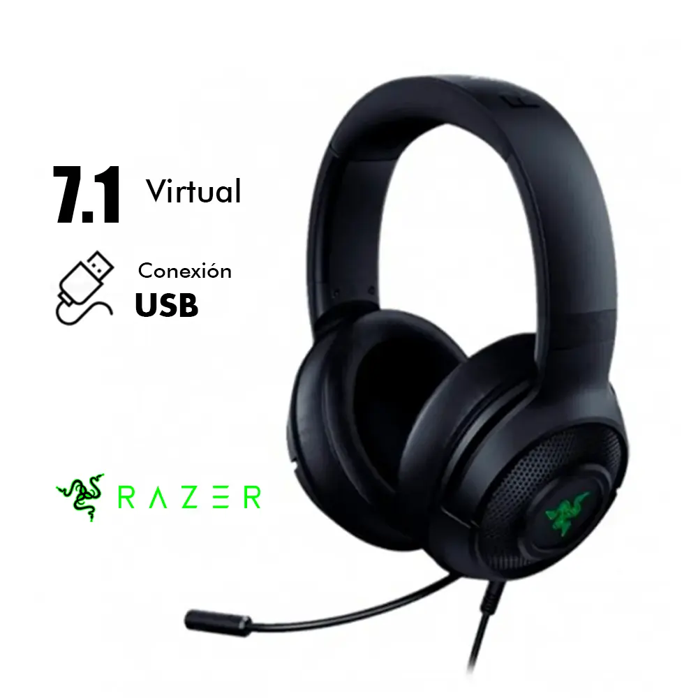 Marca : Razer Modelo : Kraken V3 X Categorías : Audífonos, Audífonos Gaming, Periféricos, Zona Gamer Compatibilidad : Windows Color :Negro Almohadillas híbridas de tela y espuma viscoelástica Conductores RAZER TRIFORCE 40mm Micrófono cardioide HIPERCLEAR RAZER UPC: 810056141530