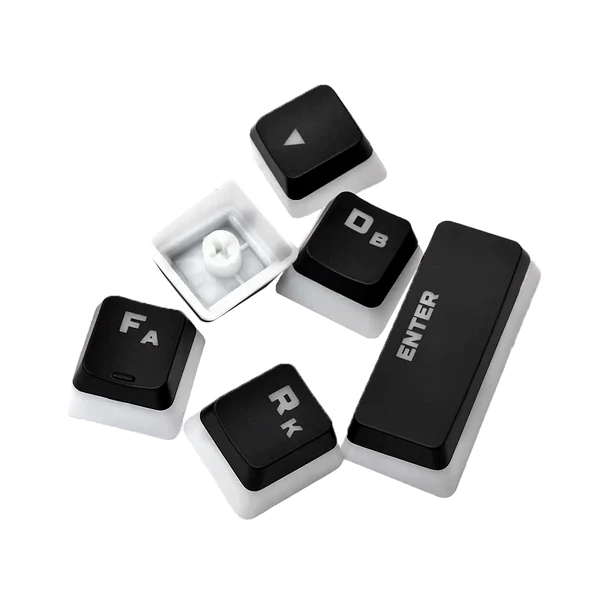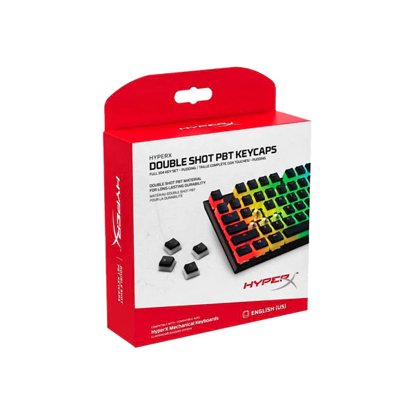 Las HyperX Pudding Keycaps presentan un diseño de doble capa translúcida y nuestra distintiva fuente HyperX, ambos creados para ofrecer un brillo adicional. Estas teclas PBT de doble capa son más gruesas, duraderas y resistentes a los disolventes. Este juego de teclas es compatible con los teclados HyperX y la mayoría de los demás teclados mecánicos para juegos. Además, incluye una práctica herramienta de extracción de teclas HyperX para facilitar la instalación.