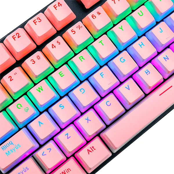 Las teclas SCARAB A130 son perfectas para quienes buscan darle un aspecto más atractivo a su teclado mecánico, añadiendo un toque personalizado muy cool. Están hechas con tecnología de inyección doble, que garantiza mayor durabilidad. Su grosor proporciona pulsaciones claras y consistentes. Están disponibles en tres colores: rosa, blanco o negro. La tecnología de inyección doble garantiza que las letras no se desgasten y el acabado texturizado en la capa exterior evita marcas de aceite y sudor. La capa interna translúcida blanca permite una iluminación de fondo más intensa, lo que lleva el efecto de las luces RGB de su teclado a un nivel superior y más sofisticado. Los materiales resistentes a la decoloración aseguran que cada letra permanezca visible incluso después de mucho uso. La capa translúcida también permite que la luz RGB brille con claridad, facilitando la visibilidad nocturna.