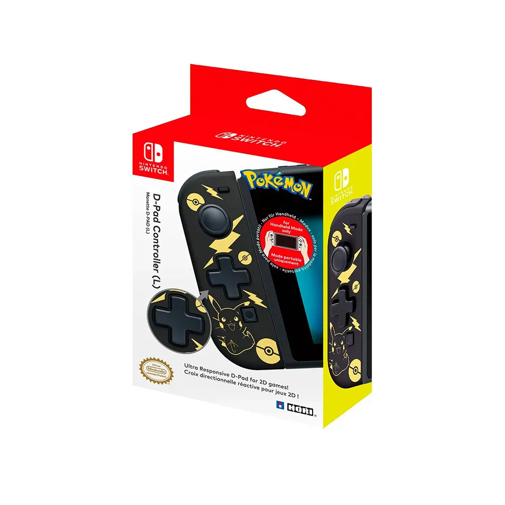 Dale a tu Nintendo Switch esa sensación clásica con el controlador d-pad (L) de Hori. Hecho para el jugador en movimiento, el d-pad Controller (L) es ideal para títulos intensivos de d-pad, donde la precisión de Lightning cuenta, como los clásicos de NES y SNES en Nintendo Switch Online y tus plataformas, rompecabezas y peleas favoritos de Nintendo Switch juegos. Solo para modo portátil. Con permiso oficial de Nintendo y Pokémon.¡Agrega un d-pad a tu Nintendo Switch!Solo para modo de mano / portátilPerfecto para títulos intensivos en d-padElegante diseño e ilustraciones de Pikachu en negro y doradoCon permiso oficial de Nintendo y la compañía Pokémon International. IMAGEN REFERENCIAL (El empaquetado del producto puede tener variaciones)
