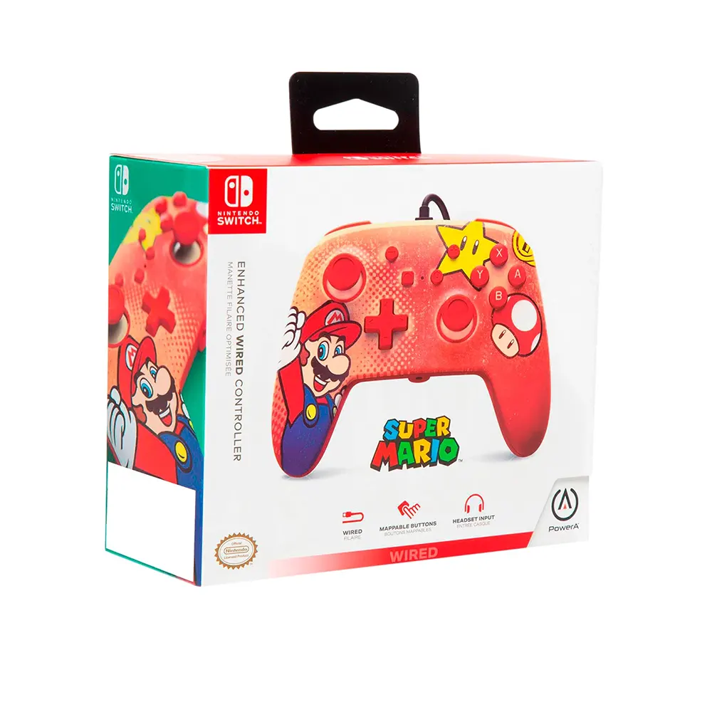 Juega tus juegos favoritos de Nintendo Switch * con estilo con este controlador con cable mejorado PowerA en rojo con diseño de Mario Vintage, conector de audio de 3,5 mm y dos botones de juego avanzados asignables. • Diseño ergonómico con disposición de botones de Nintendo Switch• El controlador de videojuegos cuenta con conector de audio de 3,5 mm y botones de juego avanzados asignables• Cable USB de 10 pies desmontable con correa de velcro• No se requieren baterías IMAGEN REFERENCIAL (El empaquetado del producto puede tener variaciones)