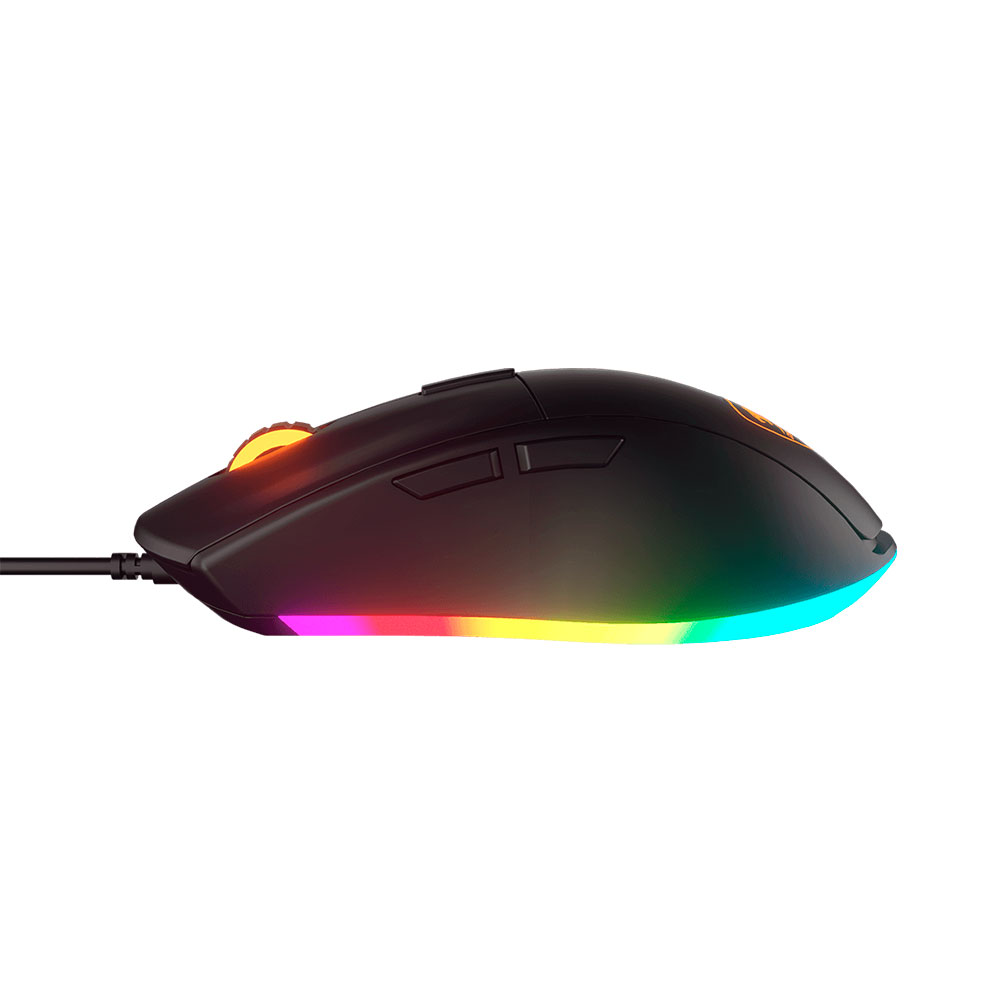 Diseño para entusiastas de los juegos Minos XT es un ratón para juegos ágil y potente, ideal para aquellos que disfrutan de una experiencia de juego ágil. Calidad de primer nivel Este mouse para juegos ha sido diseñado para durar. Detrás de sus dos botones principales hay dos interruptores de juego originales que garantizan una duración de al menos 20 millones de clics . Potente iluminación RGB El área retroiluminada de Minos XT le permite crear la mejor atmósfera de juego para su área de juego. ¡Elija uno de los siete maravillosos modos predeterminados que preparamos para usted y disfrute del espectáculo! Gran precisión El sensor óptico ADNS-3050 ha sido diseñado especialmente para jugadores. Con la posibilidad de ajustar el nivel de DPI hasta 4000 DPI, podrá ajustar su rendimiento para lograr el equilibrio ideal entre velocidad y precisión. Seis botones totalmente personalizables Minos XT es compatible con el legendario COUGAR UIX, el mejor sistema de gestión de dispositivos de juego del mercado. Una interfaz fácil de usar y la personalización completa de sus seis botones, que incluyen macros, atajos y más, abren un nuevo mundo de posibilidades