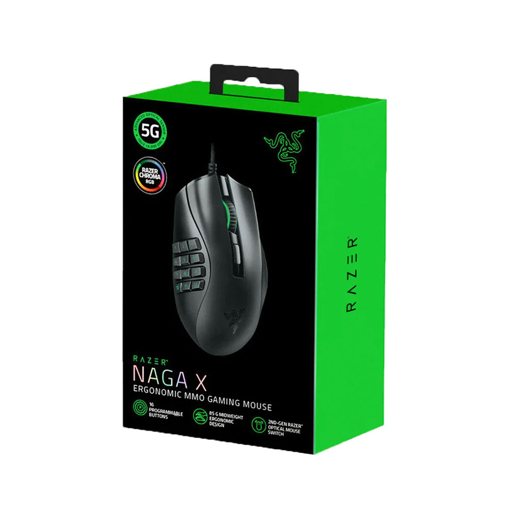 Un ratón diseñado ergonómicamente para juegos MMO con 16 botones personalizables. Más ligero y equipado con otras características avanzadas, está listo para llevar tu rendimiento al siguiente nivel. Amplía tu arsenal de comandos asignando teclas de acceso rápido o macros esenciales a través de Razer Synapse 3. Además, aprovecha la función avanzada Razer ™ HyperShift para duplicar tus acciones con un perfil de botón secundario que se activa con solo pulsar una tecla. Con un diseño ergonómico y un peso medio de 85g, el Razer Naga X es un 30% más ligero que el Razer Naga Trinity, ofreciendo un deslizamiento suave y sin esfuerzo. Recomendado para jugadores con manos de tamaño mediano a grande, este ratón MMO es ideal para aquellos que prefieren los estilos de agarre con palma o garra.