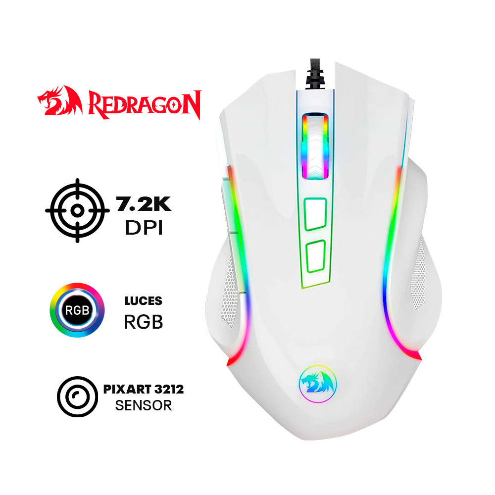 El mouse con cable ideal para ergonomía, sin competencia en cuanto a comodidad, con componentes de alta calidad que respaldan nuestros periféricos. El modelo Griffin encaja perfectamente en la mano gracias a sus curvas y textura de panal en los costados izquierdo y derecho, proporcionando un agarre cómodo para el meñique, el anular y el pulgar, ideal para uso prolongado sin fatiga. En la base, tiene almohadillas de teflón que permiten un deslizamiento suave y mayor durabilidad que otros materiales. El chasis está hecho de ABS reforzado, garantizando resistencia y longevidad. En su interior, el mouse incluye un sensor óptico Pixart PWM 3212 y switches Omron, diseñados para ofrecer precisión y durabilidad, asegurando que el rendimiento interno sea tan bueno como su aspecto exterior. El cable trenzado resiste hasta diez mil flexiones bruscas y soporta una carga continua de hasta 12 kilogramos. Además, la conexión USB está chapada en oro para evitar la corrosión y asegurar la mejor conductividad. El Griffin también cuenta con iluminación RGB configurable a través de software, incluyendo una banda que rodea todo el contorno del mouse, además de luces laterales en la rueda de desplazamiento y el logotipo de Redragon. El dispositivo puede adaptarse a tus preferencias estéticas. Con DPI ajustables entre 600 y 7200, configurables a través del software correspondiente, puedes crear hasta cinco perfiles de DPI y cambiar entre ellos según sea necesario para diferentes tareas.