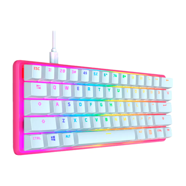 El HyperX Alloy Origins™ 60 es un teclado altamente portable con un tamaño compacto del 60%, lo que proporciona más espacio para mover el ratón cómodamente. Fabricado con un resistente cuerpo de aluminio y equipado con conmutadores HyperX confiables y equilibrados para una respuesta rápida y un rendimiento óptimo, con una durabilidad de hasta 80 millones de pulsaciones de teclas. Las teclas PBT de doble disparo cuentan con funciones secundarias impresas para facilitar la ubicación de funciones adicionales de forma rápida. Además, su diseño expuesto de los interruptores HyperX y sus efectos de iluminación impresionantes hacen destacar tu estilo. Personaliza aún más tu experiencia de escritura con macros, perfiles de iluminación personalizados y otras opciones mediante el software HyperX NGENUITY.