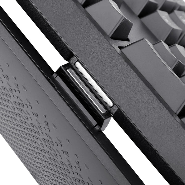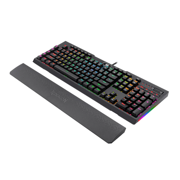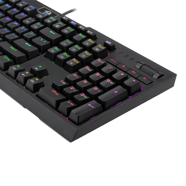 El teclado cuenta con 10 teclas macro programables divididas en dos conjuntos (G1-G5 y G6-G10), permitiéndote grabar macros sobre la marcha sin necesidad de instalar software adicional. También incluye controles para reproducir, pausar y cambiar rápidamente la música directamente desde el teclado. Con un roller de desplazamiento dedicado en la parte superior, puedes ajustar el volumen del sistema y el brillo de la luz de fondo del teclado. Gracias a los interruptores ópto-mecánicos, el desgaste se reduce, el teclado es a prueba de derrames y tiene una vida útil más larga (100 millones de pulsaciones de teclas) que los teclados mecánicos estándar para juegos. La retroiluminación RGB de 16.8 millones de colores ofrece 18 modos para crear un ambiente elegante y genial tanto para jugar como para trabajar, con la opción de iluminación lateral para una mayor personalización. El teclado está construido con ABS reforzado y teclas moldeadas por inyección doble disparo, luego grabadas con láser, lo que garantiza durabilidad y excelente calidad, perfecto para un uso intensivo. Además, su cable mallado de 1.8 metros puede resistir hasta 12 kg de carga continua y hasta 10.000 flexiones bruscas, evitando que tocar accidentalmente la tecla Win cierre el juego en el momento crucial de la partida.