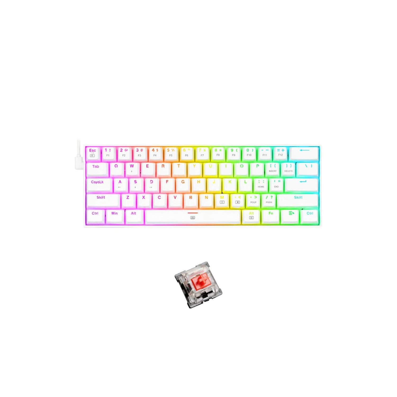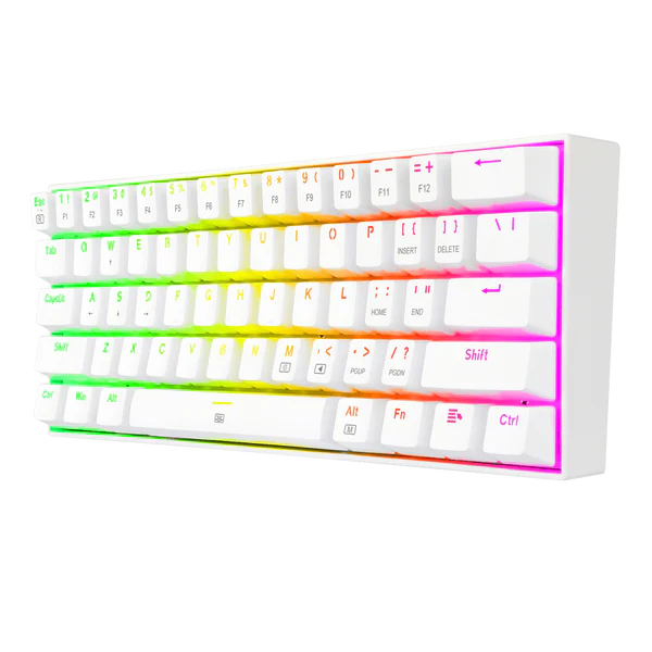 Los switches del Dragonborn ofrecen un equilibrio ideal entre los switches Blue y Red: son silenciosos y tienen respuesta táctil. Aunque el clic de activación apenas se oye, se puede sentir una leve resistencia que confirma cada pulsación. El Dragonborn es un teclado mecánico compacto del 60%, robusto y muy fácil de transportar, diseñado para el juego competitivo de alta exigencia. Incluye switches Redragon Brown, una tecla Fn, bloqueo de la tecla de Windows, un cable desmontable y una calidad de construcción superior.