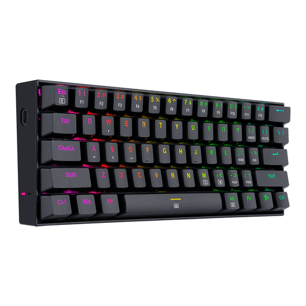 Los switches del Dragonborn ofrecen un equilibrio ideal entre los switches Blue y Red: son silenciosos y tienen respuesta táctil. Aunque el clic de activación apenas se oye, se puede sentir una leve resistencia que confirma cada pulsación. El Dragonborn es un teclado mecánico compacto del 60%, robusto y muy fácil de transportar, diseñado para el juego competitivo de alta exigencia. Incluye switches Redragon Brown, una tecla Fn, bloqueo de la tecla de Windows, un cable desmontable y una calidad de construcción superior.