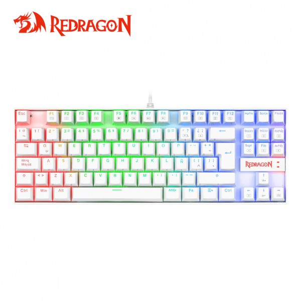 El Kumara K552 RGB es un teclado mecánico TKL, lo que significa que no incluye un teclado numérico. A pesar de su diseño compacto, es altamente funcional y notablemente robusto gracias a su estructura reforzada con acero, lo que lo hace prácticamente indestructible y extremadamente duradero. Todos sus componentes están diseñados para soportar el rigor de los juegos competitivos de alta intensidad. Está preparado para resistir derrames y salpicaduras gracias a un sistema de drenaje y switches tipo box. El sistema de doble inyección es un método de fabricación de teclas que utiliza dos piezas independientes que encajan perfectamente, haciéndolas más fuertes y resistentes al desgaste y las manchas. Los switches Blue ofrecen un recorrido largo con una respuesta táctil y un clic audible, y su diseño tipo box los hace resistentes a salpicaduras y polvo. Además, si quieres cambiar los switches, el sistema es compatible con "hot swap" para un cambio rápido. El teclado también permite acceso rápido a funciones multimedia y de navegación con combinaciones de teclas simples. Puedes controlar la reproducción de videos, pausar o volver al inicio en una página web sin problemas.