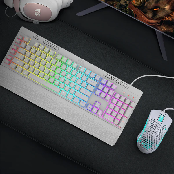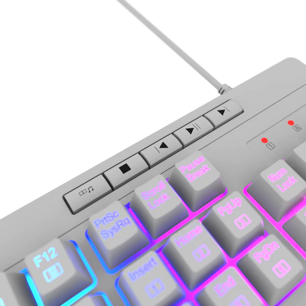 Descubre el impresionante teclado para gamers Redragon SHIVA K512, diseñado para mejorar tu experiencia de juego. Este teclado combina estilo, funcionalidad y comodidad en un solo dispositivo para que disfrutes al máximo tus juegos y actividades diarias. Con sus 6 teclas macro dedicadas, puedes programar acciones rápidas directamente desde el teclado, facilitando el control de tus juegos. Los botones multimedia te permiten ajustar el volumen y otras funciones de forma sencilla. La iluminación RGB de alta calidad te sumerge en un espectáculo de colores que puedes personalizar según tus preferencias, con hasta 7 perfiles diferentes para elegir. Además, su diseño ergonómico con reposamuñecas desmontable y magnético te garantiza comodidad durante largas sesiones de juego, reduciendo la fatiga y manteniendo tu concentración. El teclado Redragon SHIVA K512 está hecho para durar, gracias a sus teclas de doble inyección que son robustas y resistentes al desgaste y la decoloración. El cable mallado de alta resistencia te proporciona una conexión estable y segura, permitiéndote jugar con total libertad y confianza.