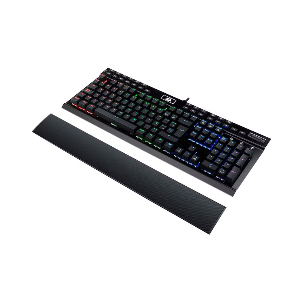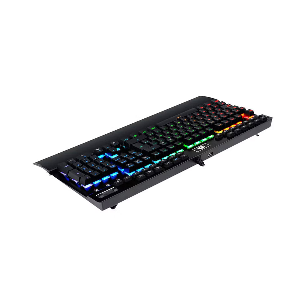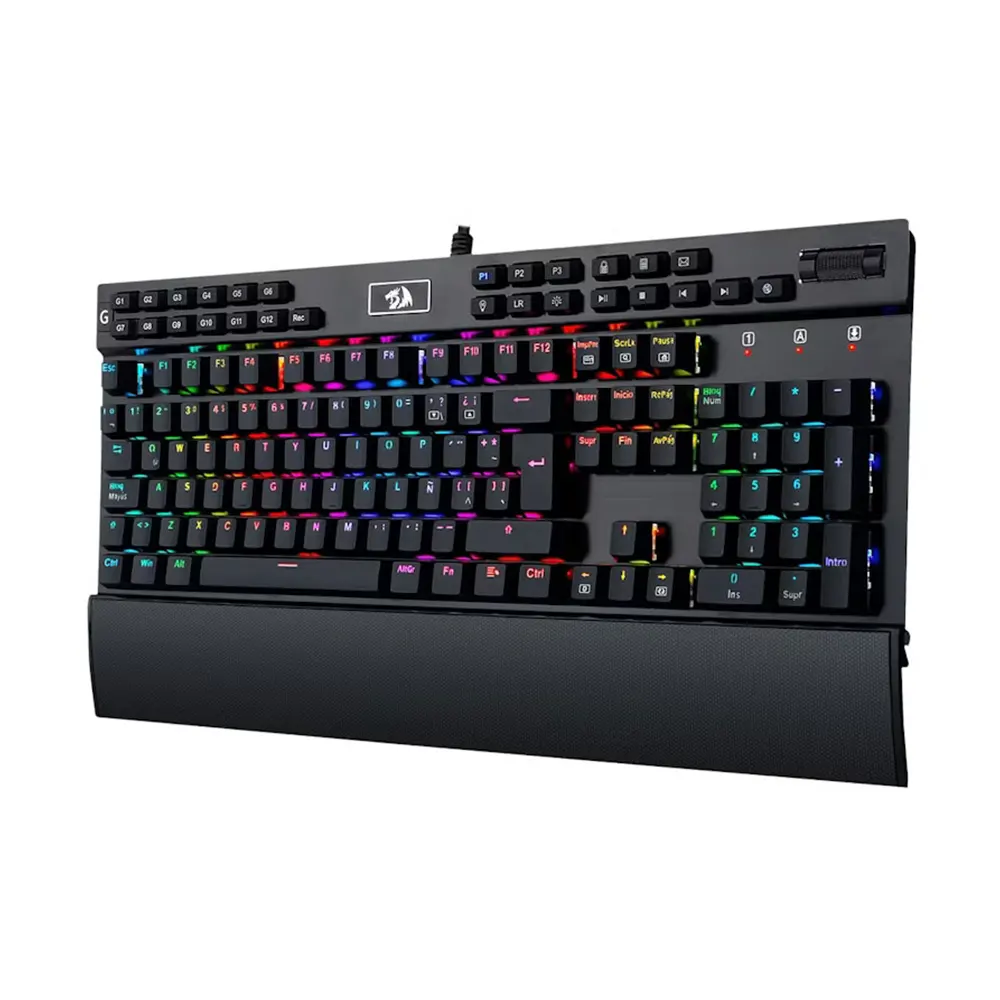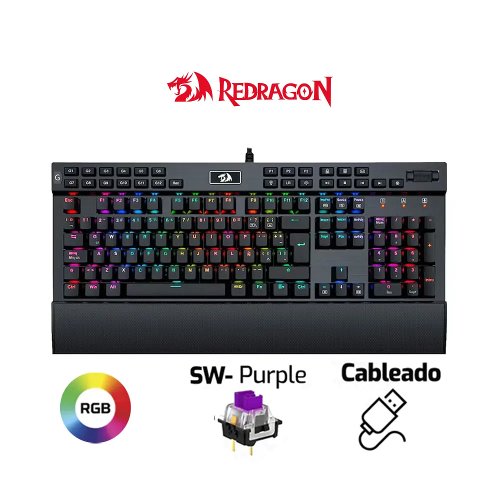 Este teclado en español tiene todo lo necesario: control de volumen, teclas multimedia dedicadas, un puerto USB pass-through en la parte trasera, reposamuñecas desmontable y 12 teclas G totalmente personalizables. Como su nombre sugiere, este teclado ofrece retroiluminación RGB ajustable para adaptarse al gusto del usuario, con capacidad para almacenar hasta cinco perfiles en la memoria interna del Yama. El software independiente para el Redragon Yama permite controlar todas las configuraciones, desde la iluminación hasta las 12 teclas G programables. Además, podemos guardar hasta cinco perfiles en la memoria integrada del teclado. El mecanismo de las teclas de Redragon utiliza la tecnología Outemu, en este caso, los switches Outemu Purple, que tienen un clic silencioso y se activan con solo 62 gramos de presión, haciendo del Yama un teclado preciso y versátil para cualquier uso. Con una estructura de aluminio, el Yama es una apuesta ambiciosa de Redragon para ofrecer un teclado único y completo. Sus teclas están hechas con inyección de doble disparo y grabadas con láser, lo que las hace duraderas y perfectas para un uso intensivo. El cable de 1.8 metros soporta hasta 12 kg de carga continua y resiste hasta 10,000 flexiones bruscas. El diseño a prueba de derrames protege el teclado de líquidos accidentales, permitiendo que el líquido se escurra por la parte trasera. Por último, pero no menos importante, todos los teclados Redragon cuentan con bases antideslizantes que mantienen el teclado firme en cualquier superficie.