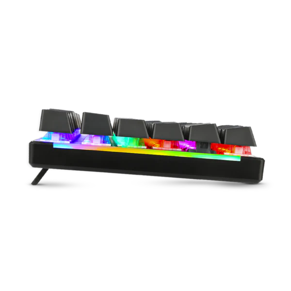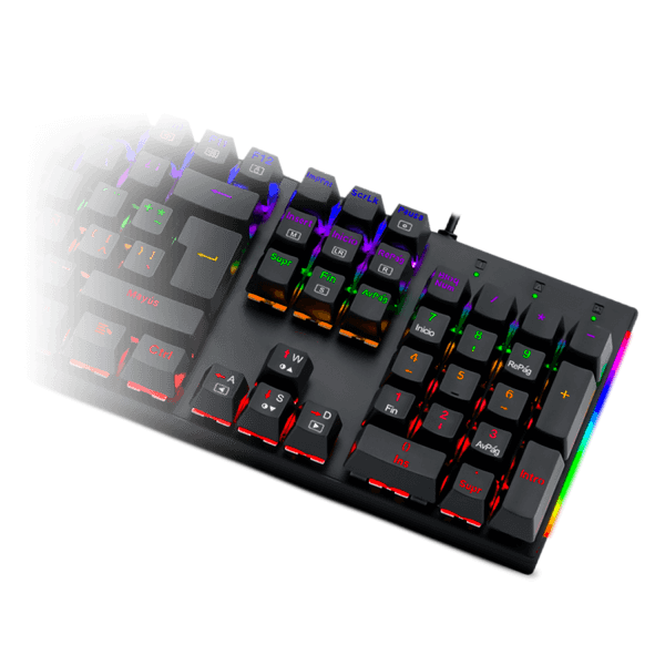 Es un teclado de tamaño completo diseñado para la victoria. Fabricado con plástico ABS resistente y teclas de doble inyección, es resistente al polvo y a las salpicaduras, diseñado para perdurar como un tanque. Además, ofrece una capacidad anti-ghosting del 100% con rollover de teclas completo. Sin embargo, su punto fuerte radica en su impresionante iluminación RGB: cuenta con dos barras laterales que cambian de color, nueve perfiles de iluminación preestablecidos y ocho perfiles especiales para diferentes géneros de juegos.