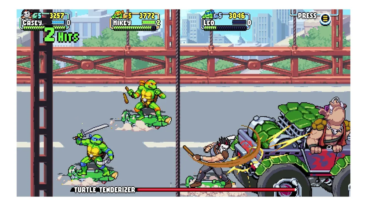 4 Tortugas, 4 estilos: Cada hermano tiene movimientos únicos. ¿Prefieres los nunchakus de Mikey, el sai de Raph, el bō de Donnie o las katanas de Leo?