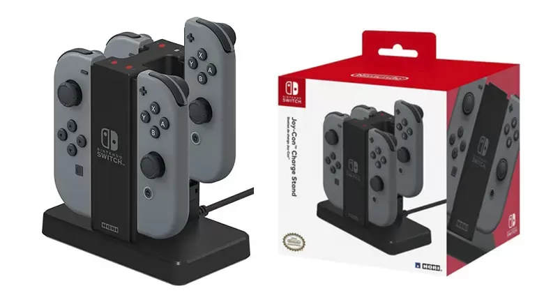 Producto oficial de Nintendo. Carga hasta 4 Joy-Con a la vez con el práctico soporte de carga Joy-Con de Nintendo Switch de HORI. Simplemente conéctalo al Nintendo Switch Dock y desliza Joy-Con en rieles seguros. Los indicadores LED se apagan cuando están completamente cargados. (Joy-Con se vende por separado)