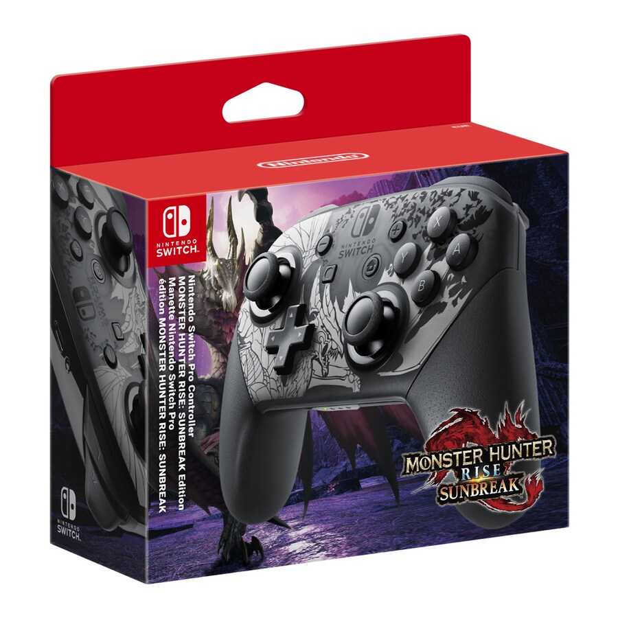 Este control te brinda una experiencia de juego cómoda y prolongada en la consola, ya sea en modo TV o portátil. Al conectarlo a la base con el cable de carga USB mientras juegas en modo TV, puedes sincronizarlo o cargarlo. Una vez cargado, puedes desconectarlo y usarlo de manera inalámbrica. El Nintendo Switch Pro Controller viene con cable de carga, vibración HD, punto NFC para amiibos y sensores de movimiento. La edición Monster Hunter Rise presenta un diseño llamativo inspirado en Magnamalo.