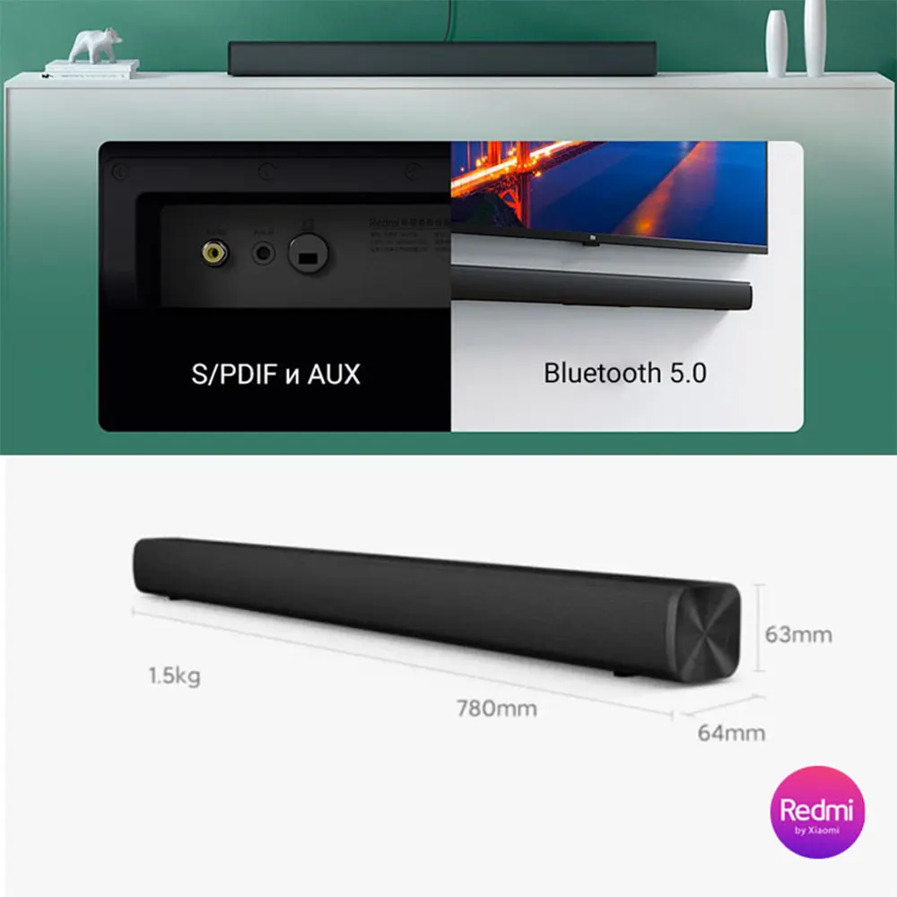 DESCRIPCIÓN Soundbar Xiaomi Redmi TV – MDZ-34-DA Sonido lujoso en un diseño minimalista elegante, sonido de rango completo y conexión Bluetooth 5,0. Peso de la columna 1,5 kg, soporte de pared o en las patas. Conéctalo al televisor o Úsalo como un Altavoz Bluetooth separado. Excelente diseño Caja de plástico esmerilado en altura y ancho de aproximadamente 6,5 cm, longitud de la columna 78 cm,. El ancho de la División de los altavoces integrados contribuye a la distribución correcta del sonido estéreo. Cuerpo suave práctico no necesita cuidados. Para sujetar Hay agujeros en la pared posterior para montar en la pared y acolchar las patas para la instalación en el armario de TV. Potencia 30 W Dos altavoces de 15 W proporcionan un excelente sonido en el rango de 80-25000hz-cobertura de frecuencia completa Conexión con cable e inalámbrica La conexión inalámbrica al estándar Bluetooth 5,0 proporciona una conexión cómoda a cualquier dispositivo en un radio de hasta 10 metros. También existe la posibilidad de conexión por cable aux y S/PDIF. Sonido de calidad de lujo Para la calidad del sonido de Xiaomi Redmi TV soundbar son los antiguos desarrolladores de dispositivos de audio Philips acústico. Excelente sonido en un diseño lacónico y rendimiento corporativo de alta calidad: Las principales cualidades de Xiaomi Redmi TV soundbar negro. Soundbar Xiaomi Redmi TV soundbar se presenta en un diseño negro compacto y lacónico, gracias al cual no ocupa mucho espacio. Los botones de control están ubicados en el lateral de la caja de plástico. Gracias al montaje en la pared, puede fijar el panel de sonido directamente debajo del televisor, donde el dispositivo se verá muy apropiado. La presencia de patas suaves invisibles desde abajo también le permite instalar el panel en la mesa o el gabinete. El dispositivo con dos altavoces de banda ancha a 15 W pesa 1,5 kg y tiene dimensiones de 78×6,4×6,3 cm. Proporciona interfaces de conectividad AUX y S/PDIF, así como tecnología inalámbrica Bluetooth con un alcance de hasta diez metros. La barra de sonido reproduce sonidos en el rango de frecuencia de 80-20000Hz a una resistencia de 4 ohmios, lo que confirma un sonido fuerte y claro. El dispositivo de soundbar Xiaomi Redmi TV funciona desde una fuente de alimentación común y necesita un adaptador ya que tiene un enchufe chino para la toma de corriente. También viene con un juego para montaje y cable SPDIF. Esta barra de sonido no solo será una excelente adición a su TV, sino que también se puede utilizar como altavoz autónomo para su teléfono inteligente. Especificaciones: – Modelo: MDZ-34-DA – Color: Black – Material: ABS, metal – Power: 30W – Conectividad: bluetooth 5.0 / SPDIF / AUX – Frequency Range: 80Hz – 20000Hz – Impedancia: 4O – Información de la batería: Tipo de batería: batería de iones de litio – Dimensión: Peso del producto: 1,50 kg – Tamaño del producto (L x W x H): 78.00 x 6.40 x 6.30 cm Contenidos del paquete – 1 x Redmi TV SoundBar, 1 x SPDIF Cord, 2 x Tornillos, 1 x Tapón de goma de expansión, 1 x Almohadilla de espuma EVA, 1 x Manual
