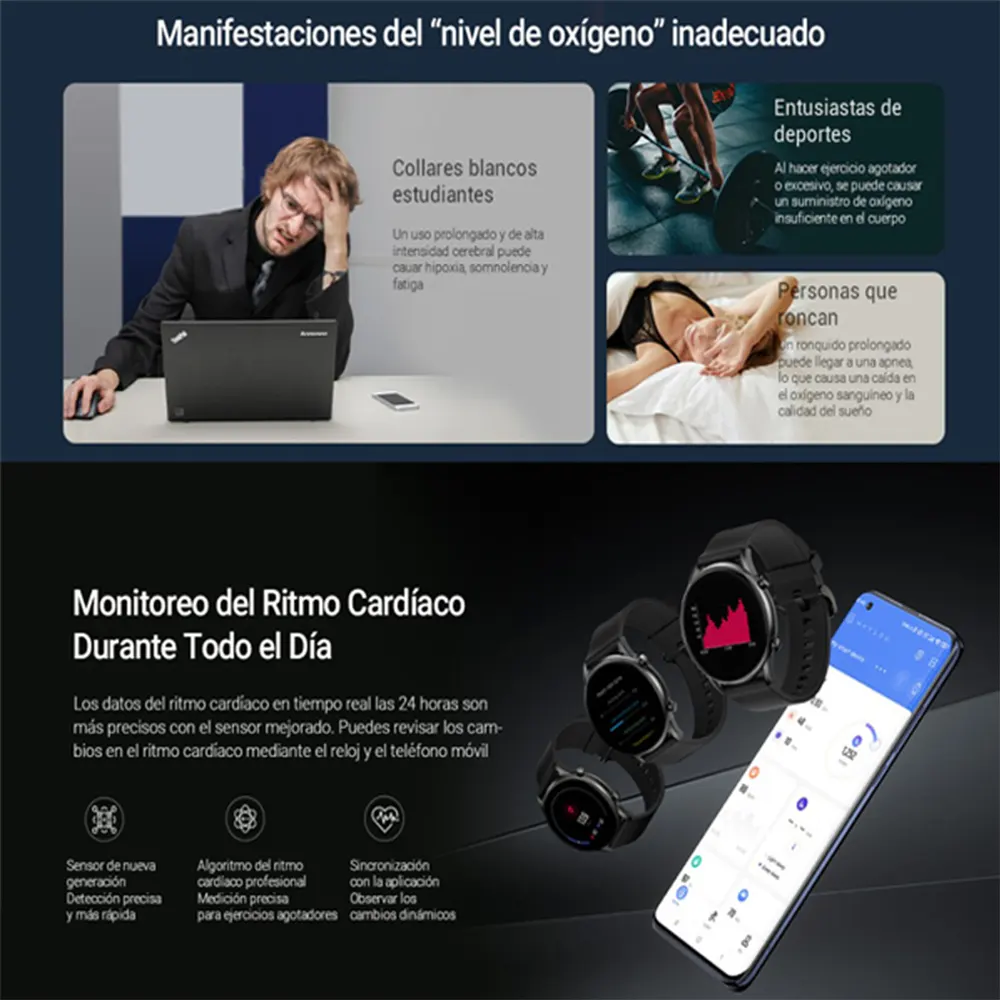 Una baja saturación de oxígeno puede causar fácilmente fatiga, falta de energía y una disminución de la concentración. Así que, si en algún momento notas alguno de estos síntomas, levanta tu muñeca y comprueba tu SpO2 con el Haylou RT2. ¡Y mantén tu salud bajo control!